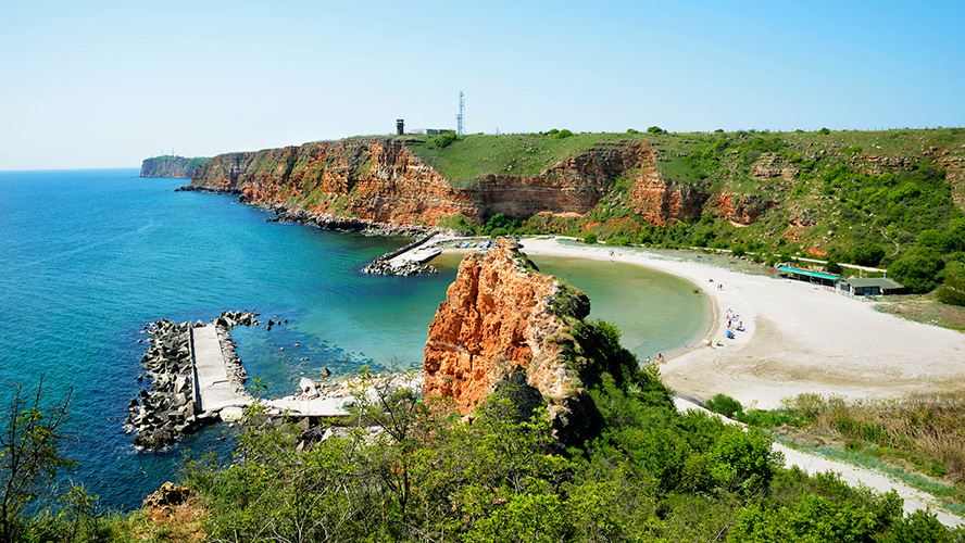 At the foot of Cape Kaliakra, one of the most spectacular spots on the Bulgarian coast, you’ll find Bolata Beach, a small semicircular bay with calm waters and soft sand. This secluded spot, surrounded by reddish cliffs and wild vegetation, is one of the Black Sea coast’s best-kept secrets.