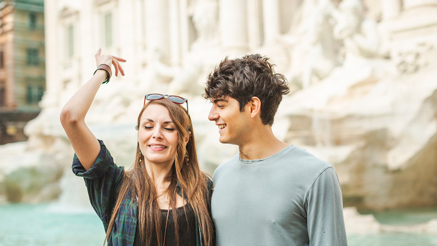 Throwing coins into the Trevi Fountain