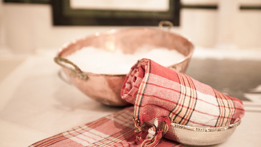 There are many properties and benefits of a hammam. It’s said to increase your ability to exchange oxygen in the lungs, relax the nervous system, release toxins through sweat, and stimulate the hormonal system, producing feelings of well-being.