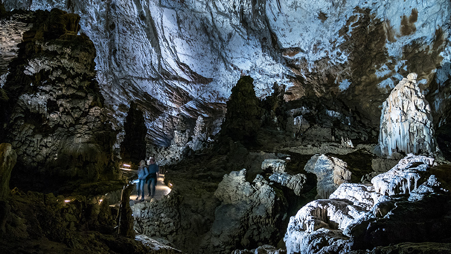 Just a few kilometres from the castle, the Postojna Caves offer a spectacular contrast, showing nature’s creative power. These caves, with over 24 kilometres of passageways, chambers and galleries, are the result of millions of years of erosion caused by the River Pivka. Although they have been known since ancient times, the Postojna Caves began welcoming visitors in the 19th century, becoming one of the first caves worldwide to feature electric lighting. In 1872, an underground train was inaugurated which still carries visitors through the rock formations like the spectacular stalagmite known as “Brilliant”.
