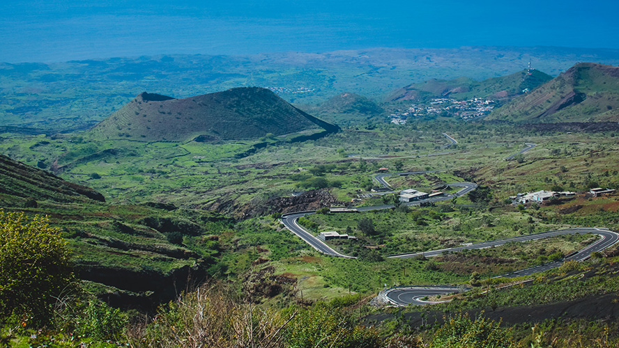 En Santo Antão, la isla más verde del archipiélago, los senderistas pueden perderse entre frondosos valles cubiertos de plantaciones de caña de azúcar y mangos, donde pequeños riachuelos corren en medio de terrazas agrícolas que descienden en pendientes pronunciadas. Contrasta con el paisaje árido y casi lunar de Fogo, donde el majestuoso Pico do Fogo, el punto más alto de Cabo Verde con sus 2.829 metros de altura, domina el horizonte. Esta variedad de ecosistemas, que incluye desde montañas cubiertas de nubes hasta vastas costas azotadas por el Atlántico, proporciona un sinfín de posibilidades.