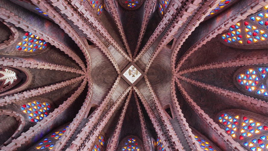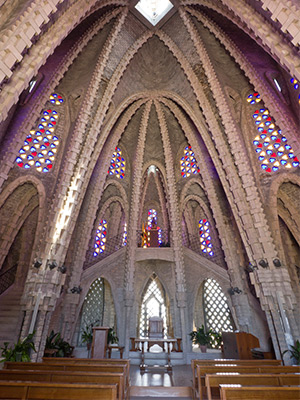 Sin detenernos en muchos detalles técnicos, te podemos decir que este santuario de Montferri muestra una planta en forma de barco (que mira a Montserrat) y que su estructura está compuesta por 120 arcos catenarios (o parabólicos), 42 pilares y 33 cúpulas. Desde el exterior es muy evidente su similitud con el perfil de las rocas de las montañas de Montserrat.
