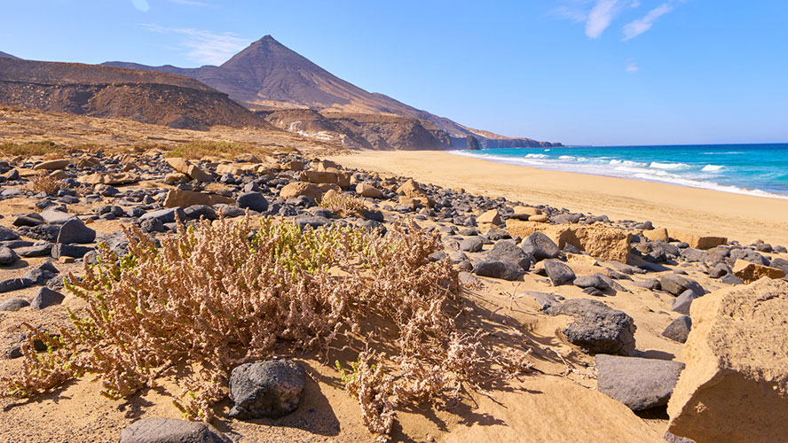 Los 150 kilómetros de costa de Fuerteventura están cincelados por playas de diversos tipos y para los gustos más variados. Lo más habitual son las extensas ensenadas de arena dorada acariciadas por el mar, pero también hay algún que otro tramo rocoso que se muestra desafiante y que brinda aguas cristalinas donde practicar esnórquel.