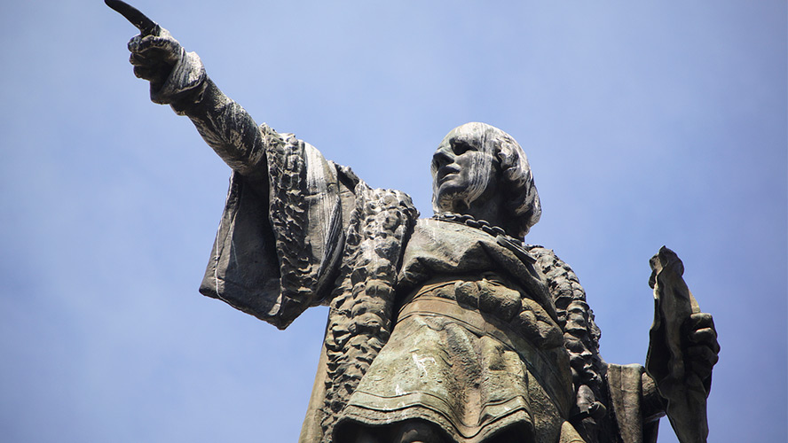 El 20 de enero de 2011, durante las fiestas patronales de San Sebastián, se inauguró en la plaza de las Monjas el monumento a Colón, una estatua sobre pedestal dedicada al descubridor de América que es obra del escultor Elías Rodríguez Picón. La estatua de Colón de Huelva, de bronce patinado, mide unos tres metros de altura y el pedestal de piedra, otros cuatro metros y medio. El almirante está representado con botas altas y espada y lleva una bandera de la Corona de Castilla en la mano izquierda y, con la mano derecha, señala hacia el mar, a través de la calle de Vázquez López. La bandera está rematada con un cruz parroquial como símbolo del papel de la iglesia Católica en el proyecto de América. El monumento, lógicamente, rinde homenaje a la Huelva descubridora.
