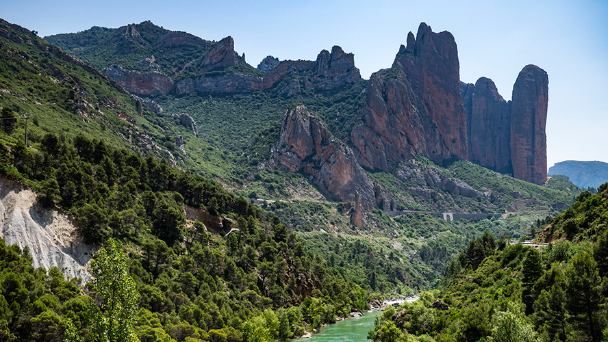 Casi 200 hectáreas de monolitos pétreos, de entre 200 y 300 metros de altura, conformados por tierras sedimentarias y rocas que subliman su color rojizo cuando los rayos del sol los iluminan durante el amanecer o el atardecer. Todo un espectáculo que atrae a miles de personas cada año y que está considerado como Monumento Natural por el Gobierno de Aragón.