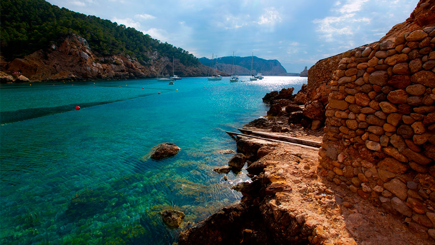 La Cala Benirràs, uno de los destinos que hay que visitar en Ibiza, es muy apreciada por los propietarios de yates privados y barcos para atracar sus embarcaciones y disfrutar de la puesta de sol, ya que son célebres los ocasos en este pedacito de Ibiza. Una cita a la que los domingos de verano se suman más barcos todavía para contemplar el emblemático ritual neohippy de los tambores. Se trata de una experiencia única –y ya mítica– que se viene celebrando desde hace varios decenios.