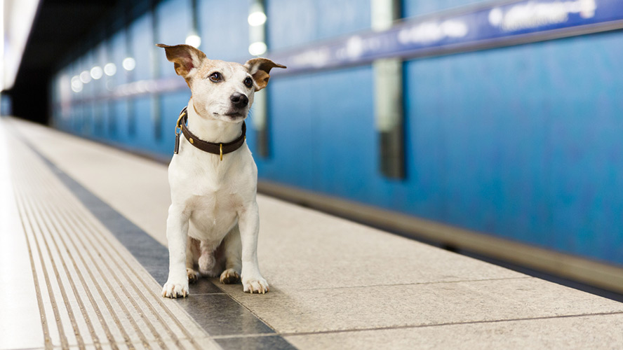 Los perros pueden viajar en el Metro, Metro Ligero y Cercanías de Madrid, sin importar su tamaño, siempre que vayan correctamente identificados con chip y lleven bozal y correa. Sólo se permite un perro por viajero y hay algunas restricciones concretas de horarios que conviene consultar. En la EMT y en los autobuses interurbanos sólo pueden viajar los perros guía o pequeños animales que puedan ser metidos en un transportín.