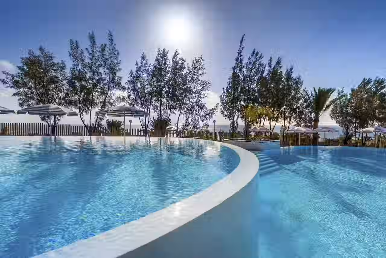 La exclusiva piscina Royal Level es el lugar ideal para disfrutar del sol y el clima de Gran Canaria en una zona privada. Relájate en un entorno rodeado de palmeras, tumbonas y sombrillas perfecto para tomar el sol, darte un chapuzón o disfrutar de un cóctel.