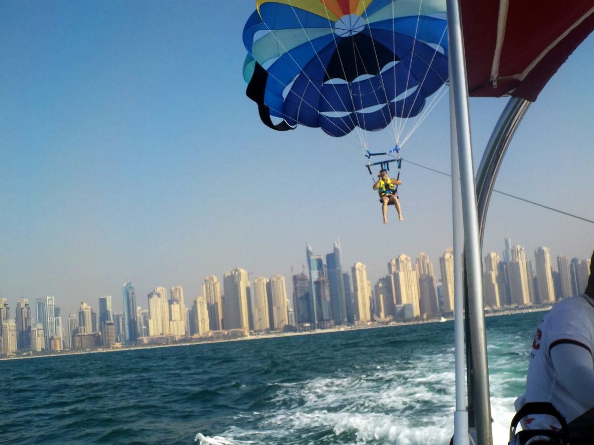 As the boat accelerates, the parasail gently ascends, offering panoramic views of the Arabian Gulf from heights of up to 500 meters. Enjoy the tranquility of floating in the sky before descending back to the boat after a thrilling 10 to 15-minute ride.