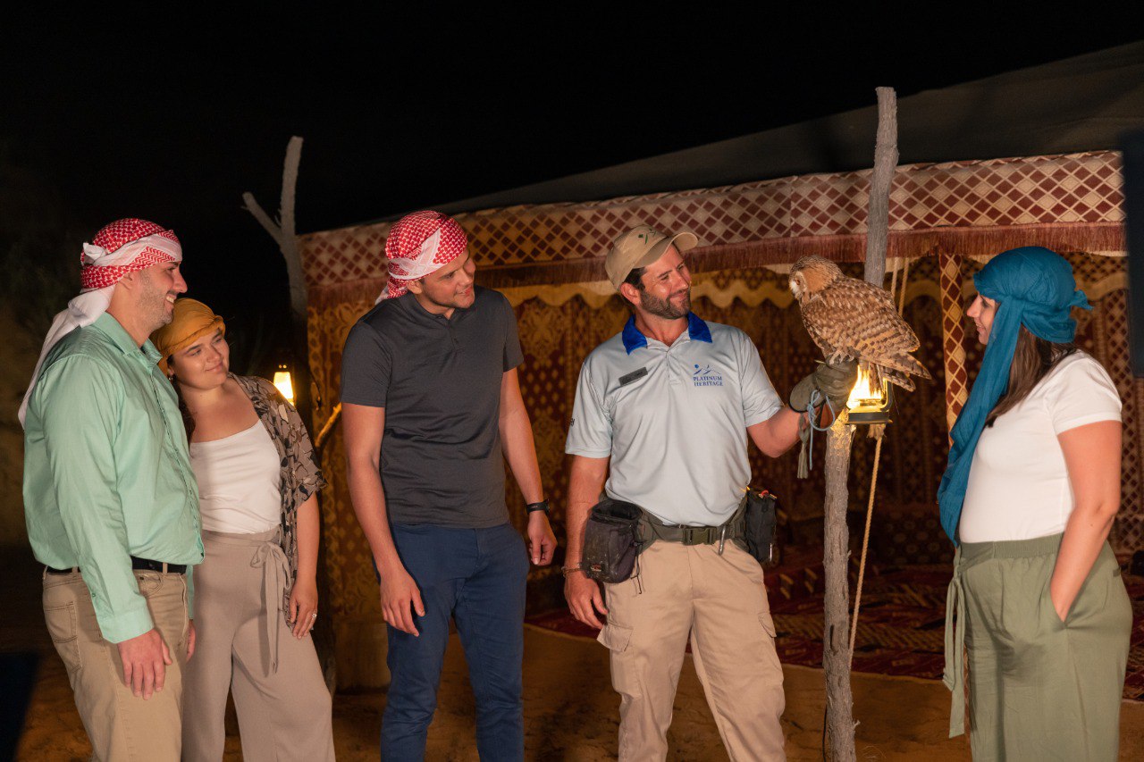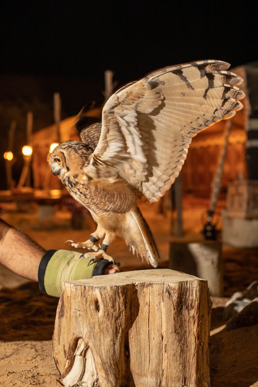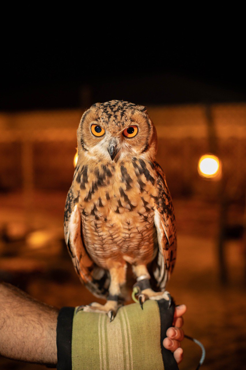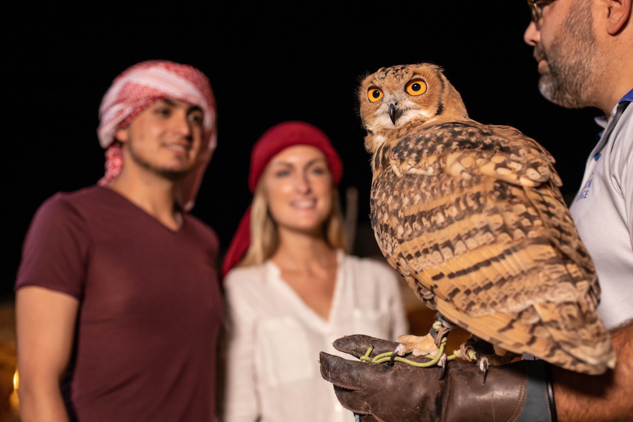 Experience the magic of the Dubai desert with our exclusive nocturnal adventure. Begin your journey with a private, air-conditioned pick-up from Dubai, Sharjah, or Ajman, leading you to the enchanting Dubai Desert Conservation Reserve. Upon arrival, receive your Adventure Pack and traditional Sheila/Ghutra headscarf. Traverse the desert in an open-top vintage Land Rover, spotting fascinating nocturnal wildlife along the way. Walk through the dunes by torchlight, searching for scorpions and other intriguing desert creatures. Arrive at a beautifully torch-lit desert retreat and savor a delicious 3-course dinner at an exclusive camp within the Royal family's desert retreat. Conclude your evening with an engaging astronomy session guided by a professional astronomer and telescope, and interact with a majestic owl. A portion of your fee supports desert conservation efforts. Please wear long pants and closed shoes for this remarkable adventure.