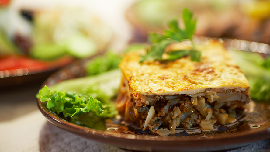 Although moussaka is known all over the world thanks to its Greek variant, the Bulgarian version has its own personality. Instead of aubergines, the basis here are potatoes, interspersed with layers of minced meat, usually pork or beef, and topped with a yoghurt and egg mixture that is cooked au gratin to a golden brown colour.