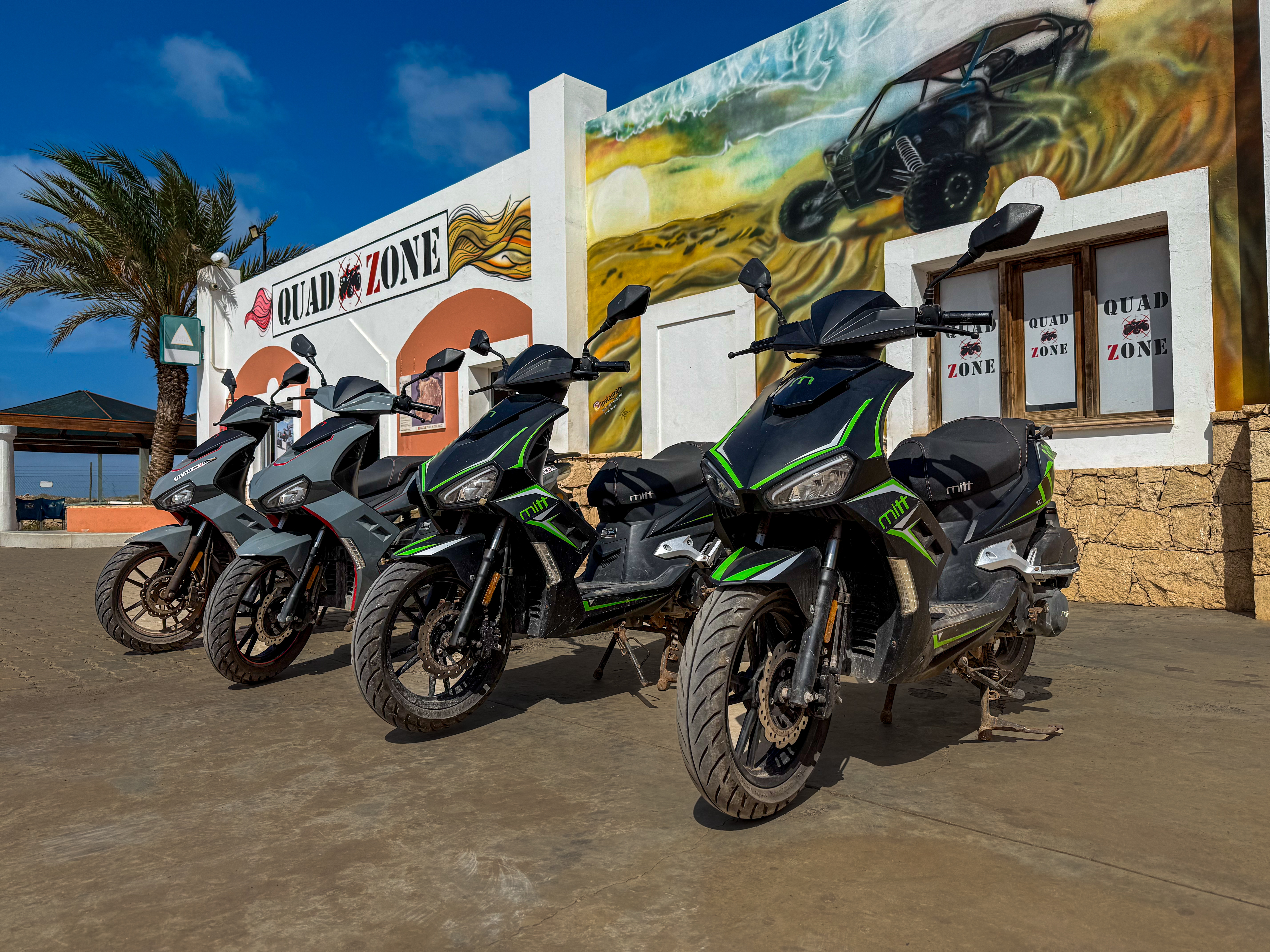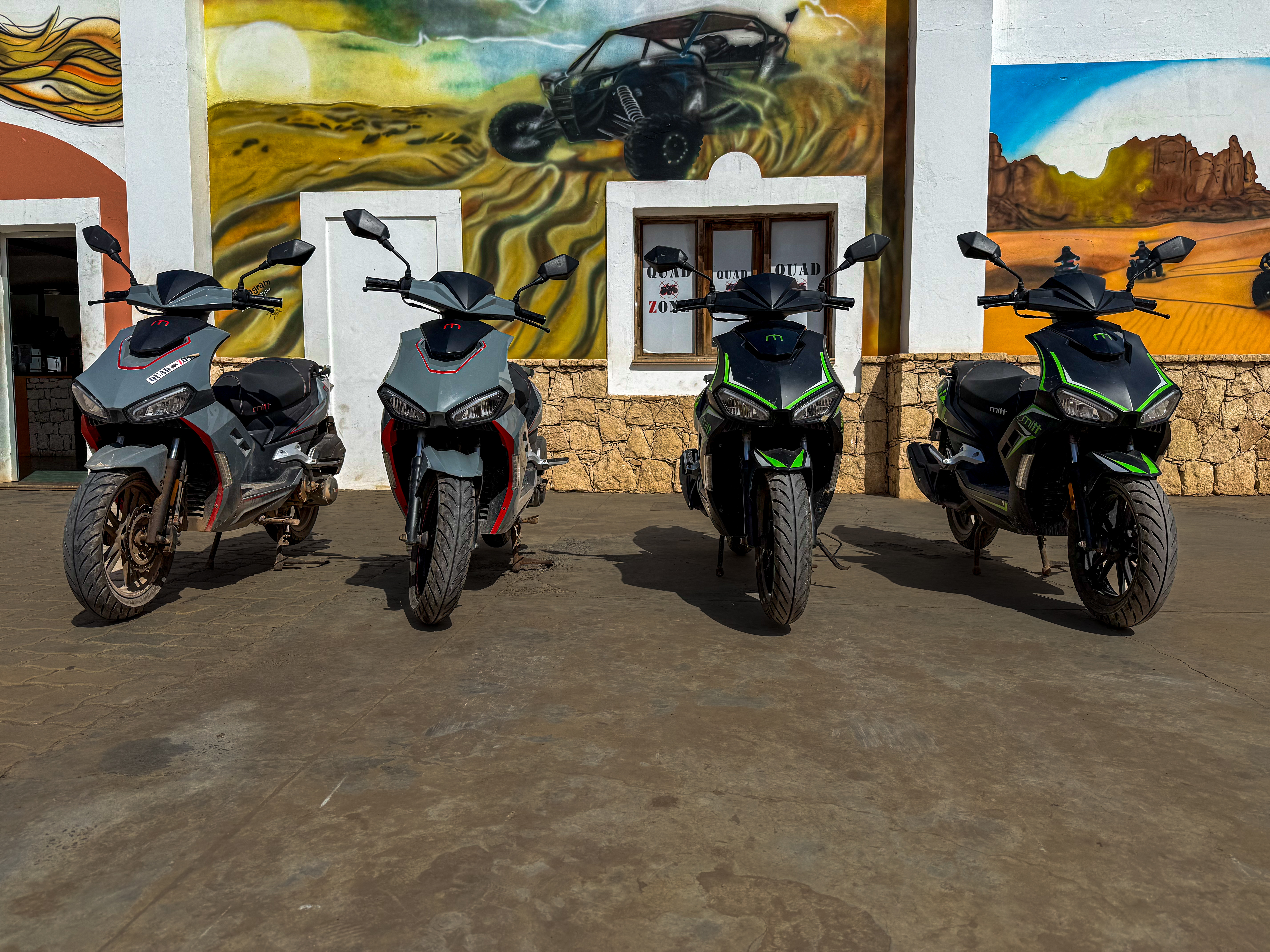 Explore Boa Vista a su propio ritmo con nuestro alquiler automático de scooters de 125 cc. Perfectamente aptos para carreteras pavimentadas y de tierra batida, nuestros scooters ofrecen una forma asequible y ágil de disfrutar de la isla. Navega libremente por ciudades, rutas costeras y senderos más tranquilos, mientras disfrutas de la libertad y la flexibilidad de las dos ruedas.