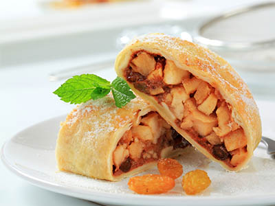 - Strudel: Central European apple cake with pastry, butter and lots of cinnamon.