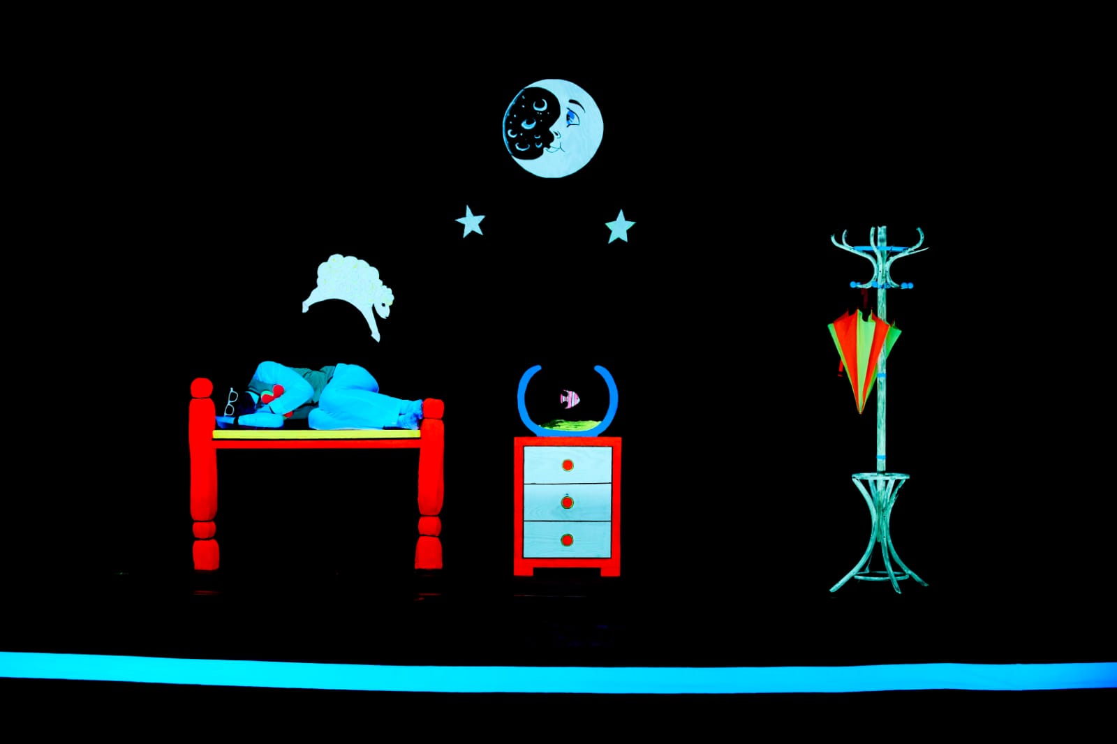 For this magic to be successful, the entire theatre auditorium must be completely submerged in darkness, and it must remain dark during the performance. Both the stage and the audience must be in pitch black, where no light can penetrate. This is the magical “black cabinet”, which gave the black light theatre its name.