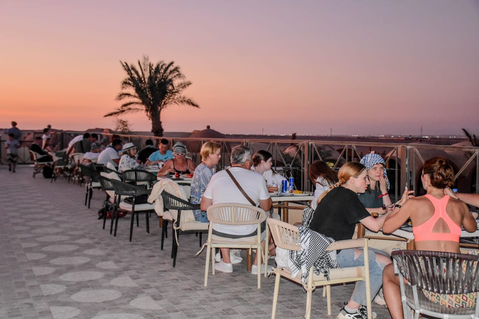 After the ride, take in a breathtaking panoramic view of Hurghada and witness the sunset as it colors the desert in golden hues. Then sit down to a freshly prepared BBQ dinner served with mineral water and soft drinks.