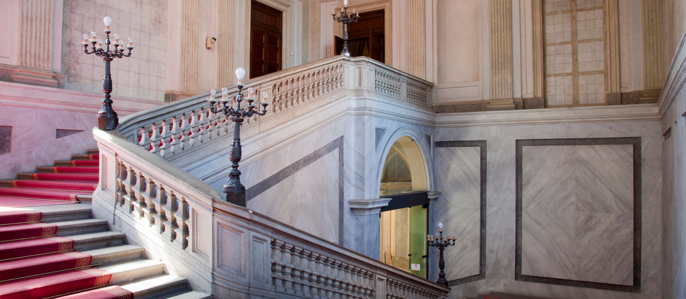 - Hall of the Caryatids: in 1745, famous architect Francesco Croce, who was working on the Duomo, was commissioned to join the room used for dances to the reception hall to create a 46 m by 17 m ballroom. This large space was decorated with exquisite frescoes and great luxury. The caryatid statues are particularly important and function as pillars that seem to support the ceiling of the huge room.