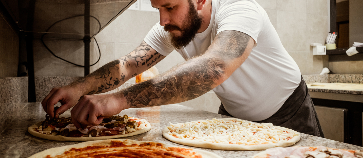Another of the characteristics of Italian pizzas is that the base is light and easy to digest. How do they do it? It’s all down to the pizza makers who get air into the dough by spinning it, flattening it and stretching it out as much as possible. The aim is to get a thin dough that weighs around 160-180 grams. When it’s cooked in a wood burning pizza oven, it turns into a lovely, light base that doesn’t leave you feeling bloated.