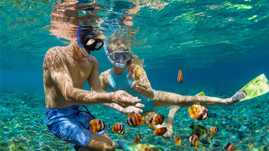 The beaches of Rivera Maya are spectacular, but the turquoise waters of the Caribbean Sea are an authentic wonder as well. Of course, they are the perfect setting for the most romantic moments. How about a catamaran cruise at sunset? With Vacaciones Barcelo, you can enjoy a charming sunset cruise along the coast, with open bar and delicious snacks included. Or you can also discover the underwater wonders of coral reefs with a snorkeling or diving excursion. Incredible experiences to live as a couple and enjoy the sea!