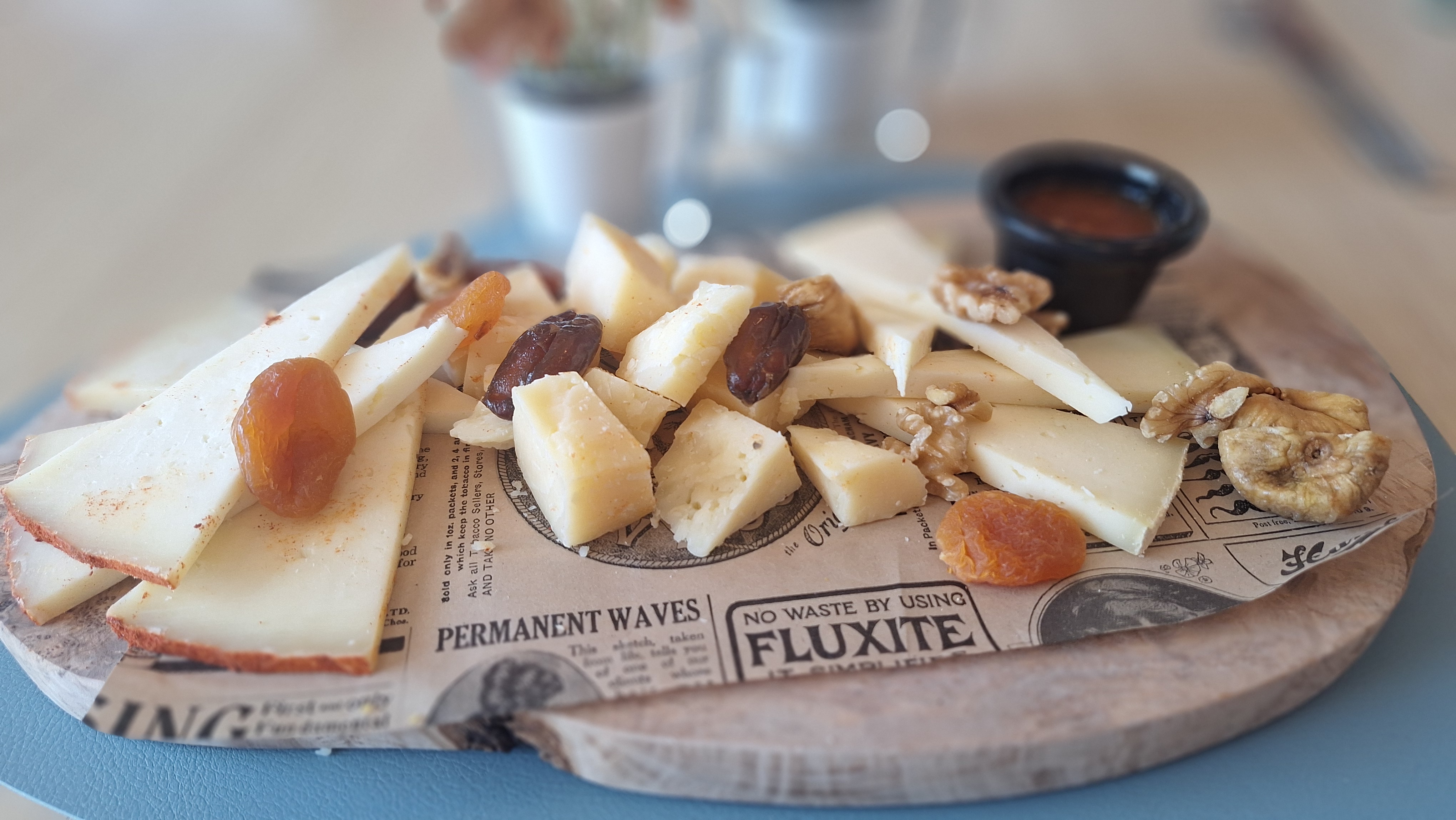 Selection of Canarian cheeses with dried fruits and Iberian ham