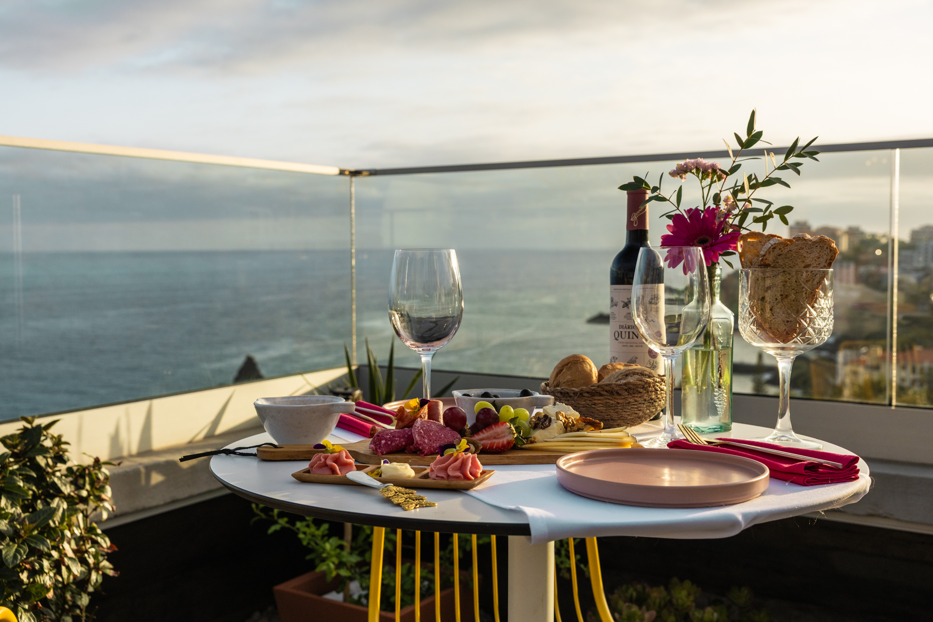 See the magic of the sunsetfrom the spectacular Rooftop of Allegro Madeira, where the sky is dressed in golden tones over the Bay of Funchal and the Lido coast. Experience a unique moment in an elegant and relaxed atmosphere, with background music and breathtaking views.
