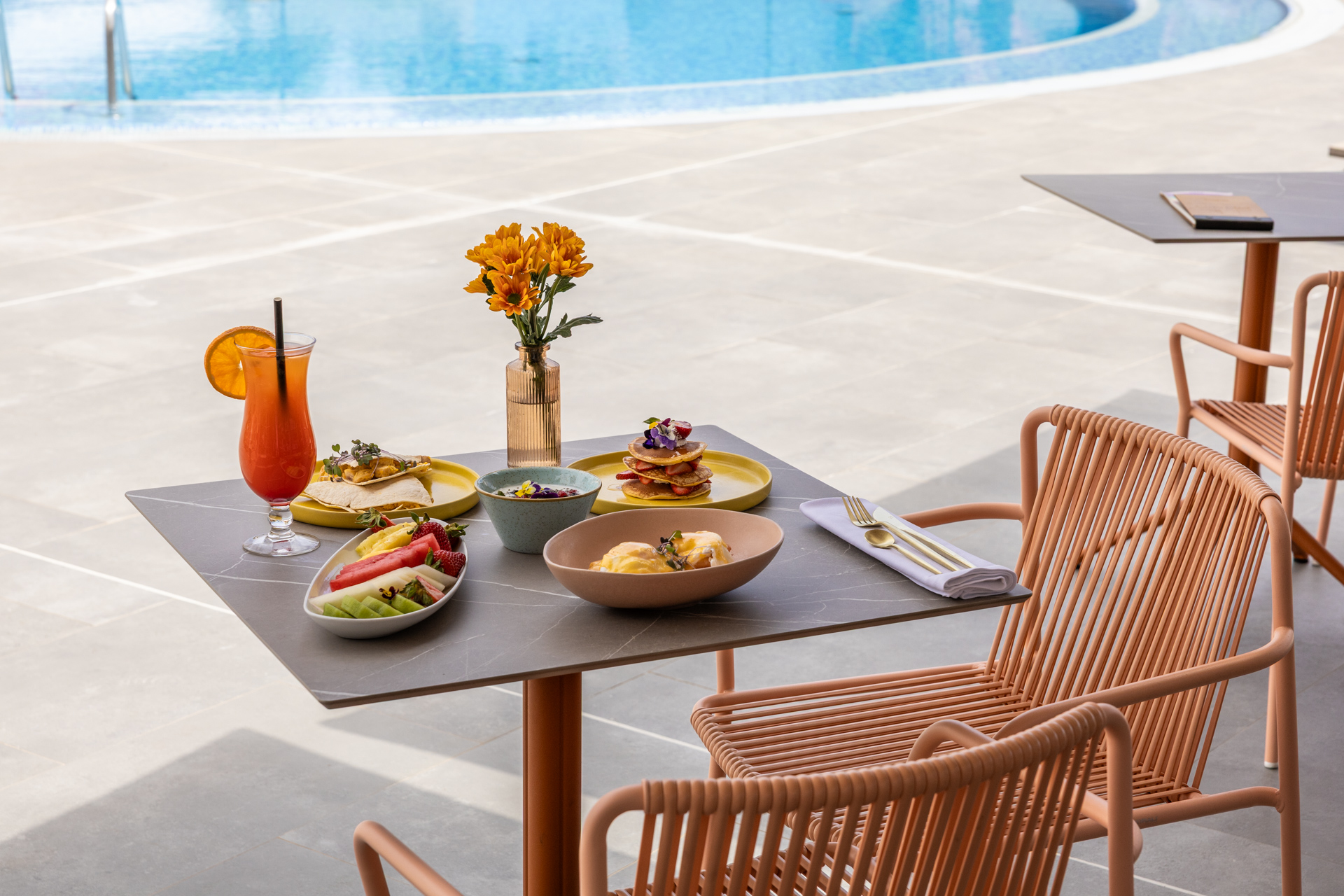 Option 2:Brunch from 10:00 to 13:00 + a cocktail on the rooftop or by the pool