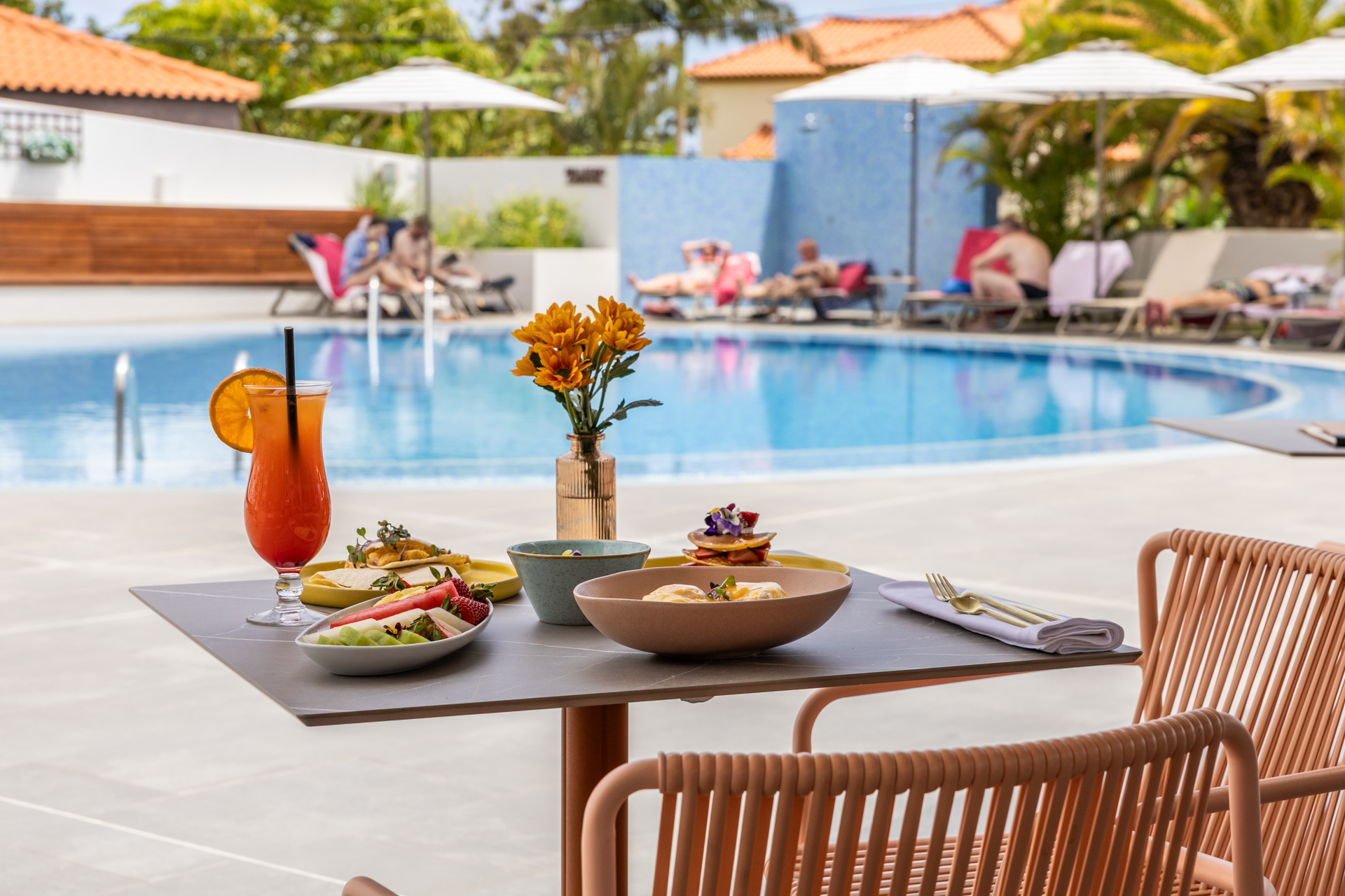 Escape stress and enjoy a perfect dayin the pool of Allegro Madeira, an urban oasis where relaxation and good cuisine meet the Atlantic. Immerse yourself in an exclusive environment with access to sun loungers and towels included for your total comfort.