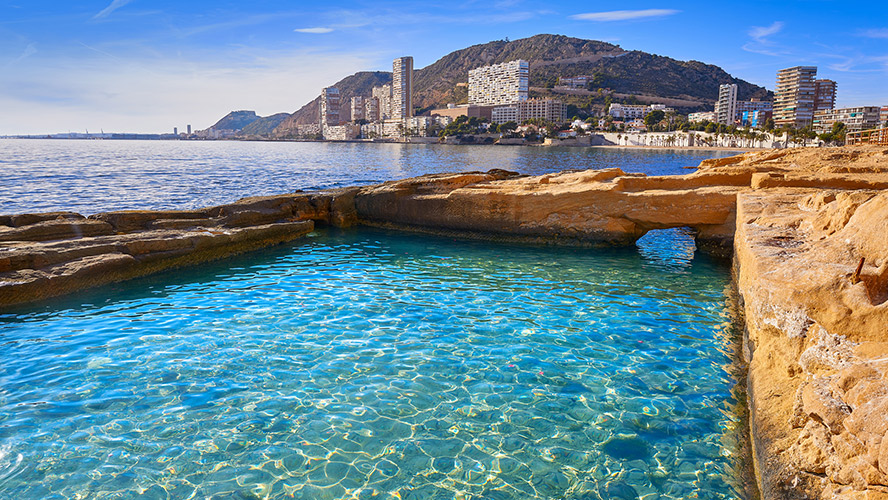 La Albufereta is a semi-urban beach with golden sand that often gets quite busy due to its easy access. It measures approximately 400 metres in length and, due to its particular features, it is perfect for snorkelling. Next to the beach is the legacy of the city’s history in the form of archaeological sites, since it was once an important port for ancient Iberian settlements, which later became the Roman city of Lucentum.