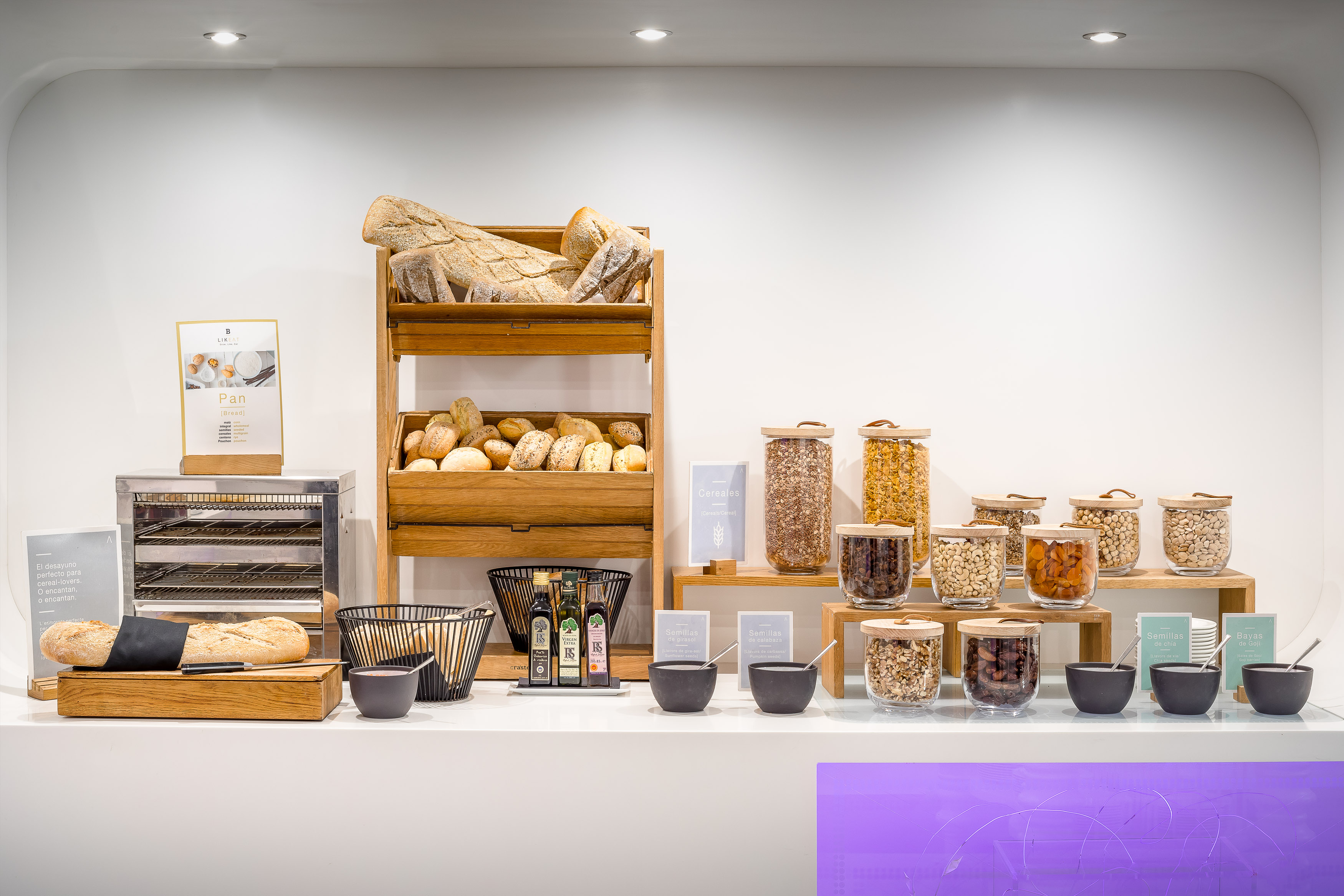 Enjoy a careful selection of fresh, local and seasonal products: artisanal breads, Iberian sausages, fruits, pastries, freshly prepared hot dishes and a variety of healthy options.