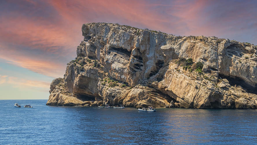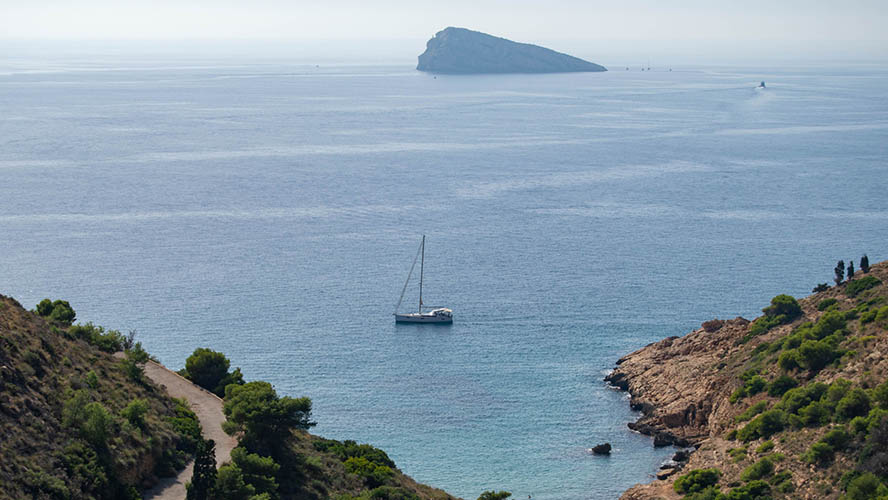 Just three kilometres separate Benidorm Island from the bustling coast, but that’s enough to make it seem like another world. With its triangular shape and rugged profile, this small piece of land covering just seven hectares rises like a natural fortress in the middle of the Mediterranean. Its origins date back to the Baetic System, and while there’s no consensus as to whether it is a volcanic remnant or a marine fault, the result is equally fascinating: cliffs plunging into the water, golden rocks dotted with lichens and a landscape that invites contemplation.
