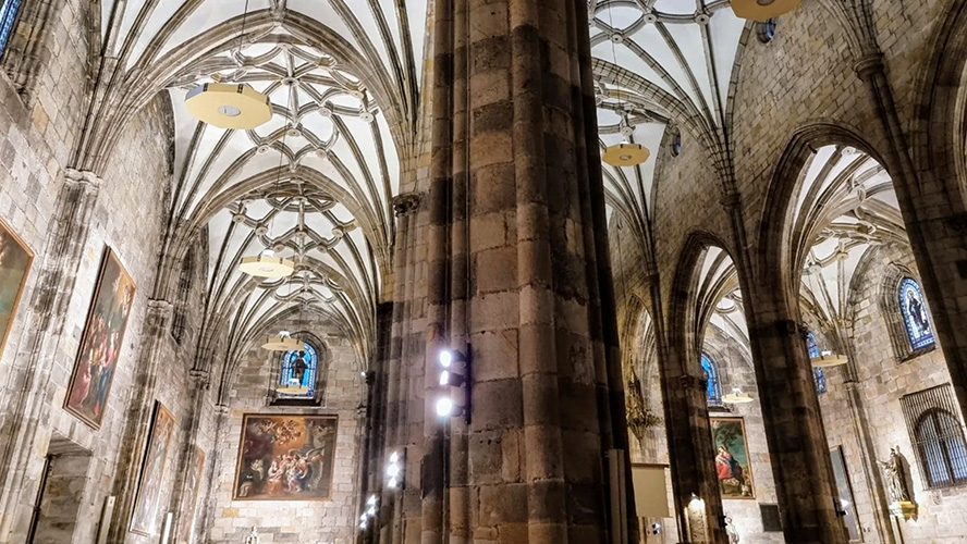 This intimate relationship between the people of Biscay and the virgin even explains the origins of the basilica, which was paid for by the hand-outs of the people of Bilbao in the sixteenth century. Hence why the pillars in the main nave are not crowned by the coats of arms of distinguished families, but instead by the emblems of the merchant guilds that contributed to its construction. Its Gothic style, designed by Sancho Martínez de Asego, diverges on the building’s magnificent façade, which instead exhibits a triumphal arch built in the Mannerist style in the mid sixteenth century. The works lasted an entire century and, as a result, the multi-coloured wood carving of the virgin was not able to take pride of place in the new church until 1603.