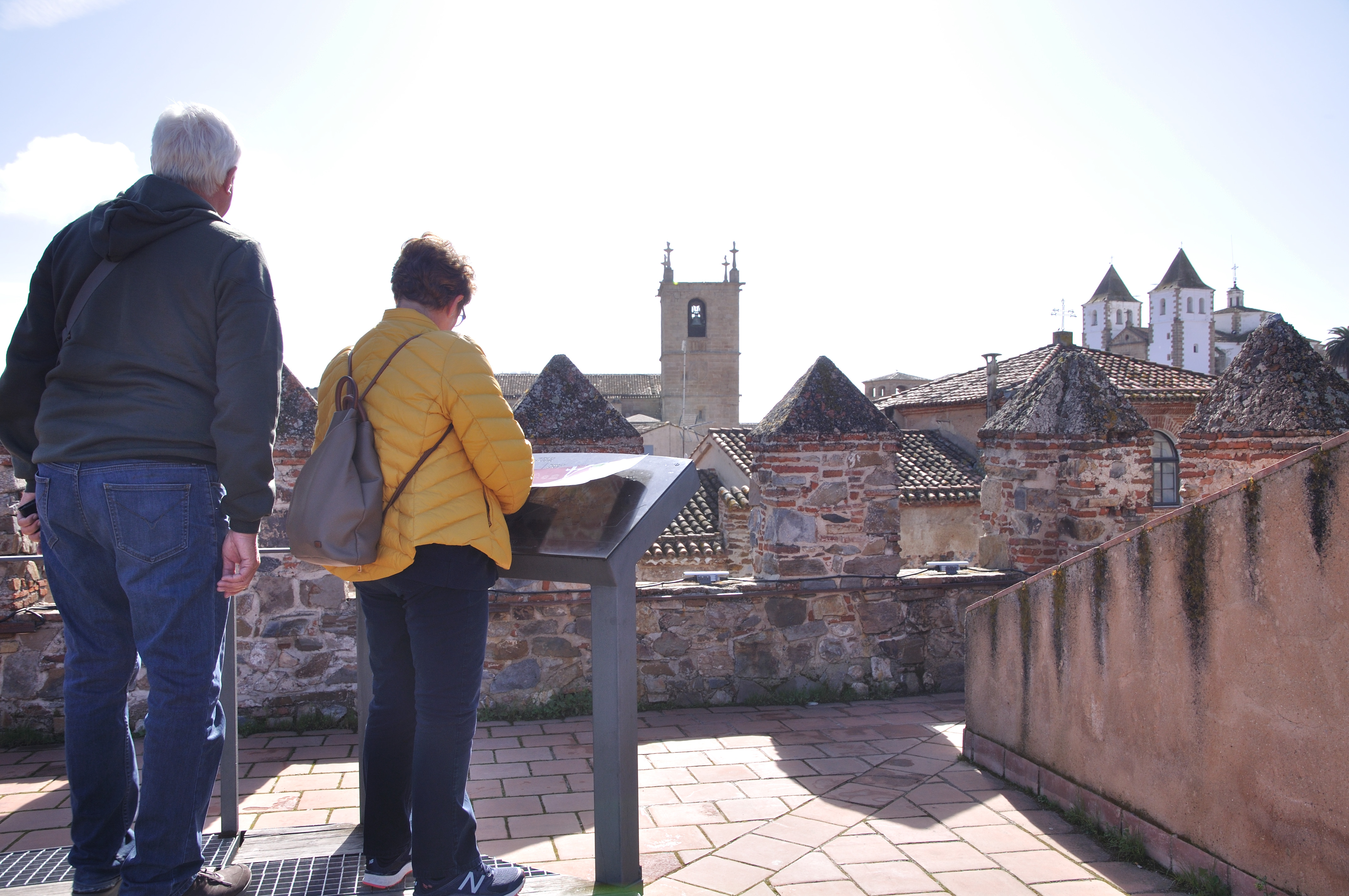 ¿Te animas a ver Cáceres? En este recorrido queremos mostrarte lo más imprescindible que no te puedes perder en nuestro casco histórico. Siempre en compañía de un guía de turismo oficial, comenzaremos nuestro recorrido en la plaza Mayor de Cáceres, cerca de la torre Bujaco, la torre de la Hierba y nuestra puerta más icónica: el arco de la Estrella. En plazas como las de santa María, los Golfines, san Jorge, san Mateo y san Pablo, descubriremos buena parte del patrimonio más emblemático de Cáceres: los palacios de Carvajal, Toledo-Moctezuma, los Golfines, Mayoralgo, Obando, Becerra, episcopal, de las Cigüeñas, de las Veletas, la casa del Sol y un largo etcétera. Por supuesto, vamos a entrar en algunos de los palacios que estén abiertos. Terminaremos nuestro recorrido en la plaza de las Veletas, delante del edificio del Museo histórico-provincial, que esconde el famoso aljibe andalusí. Opcionalmente, quien quiera nos acompañará a ver la judería vieja.