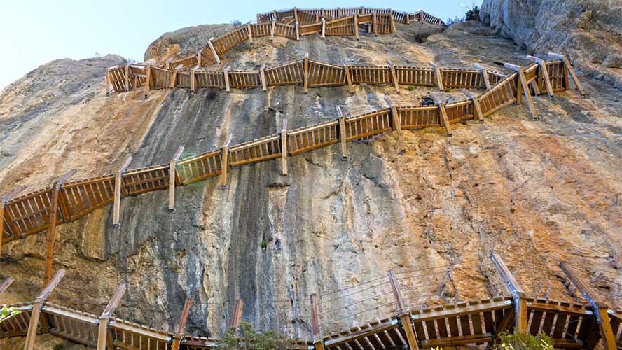 The main safety tip concerns vertigo. As these walkways are embedded into the rock, they may be unsuitable for those suffering from vertigo so it would be sensible to take precautions. The walkways have several steel cables on the outer side, so they are safe at all times. Don´t be afraid, the trail is safe.