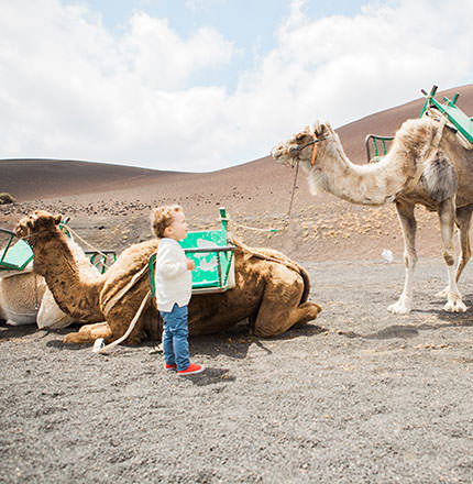 The rugged textures and the palette of colours of the landscape in Lanzarote’s Timanfaya National Park increase the temptation to explore, either on foot or on a camel.