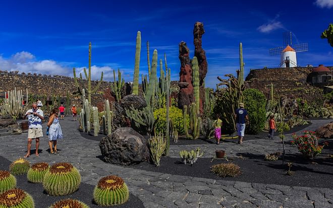 Then we will head to Guatiza, where we will have the opportunity to visit César Manrique's latest architectural work. This is the Cactus Garden, a magnificent example of architectural invention perfectly integrated with the landscape and nature of the place. There we can see more than 7,200 varieties of cactus from all over the world and the old windmill.