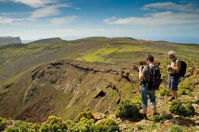 We started in the town of Ye from where we headed to the Corona volcano. During the ascent to its crater, we will be delighted with beautiful views of an agrarian landscape dedicated mainly to vines, as well as the spectacular lava flows called malpais with huge basaltic blocks stretching towards an emerald sea. After seeing its enormous crater, we will surround it on its east side to be able to observe in the distance how its 7.6 km long volcanic tube runs, of which 1.6 km are currently submerged because this eruption occurred during the peak of the last ice age when the sea level was more than 90 meters below the current one.