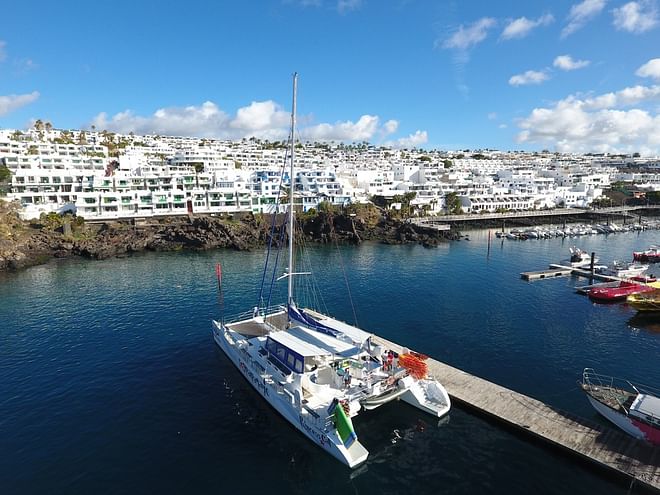 We will embark on a beautiful catamaran in the port of Puerto del Carmen to make the journey at dusk. The crew will welcome you with a delicious mojito to welcome you on board and then we will sail along the south coast of the island in search of dolphins. It should be noted that being wild animals, we cannot guarantee a 100% sighting.