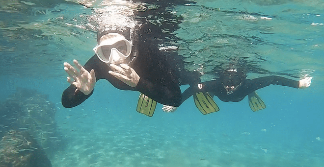 Whatever the temperature of the water, you won't be cold, since we wear wetsuits, boots, fins, masks and snorkel.