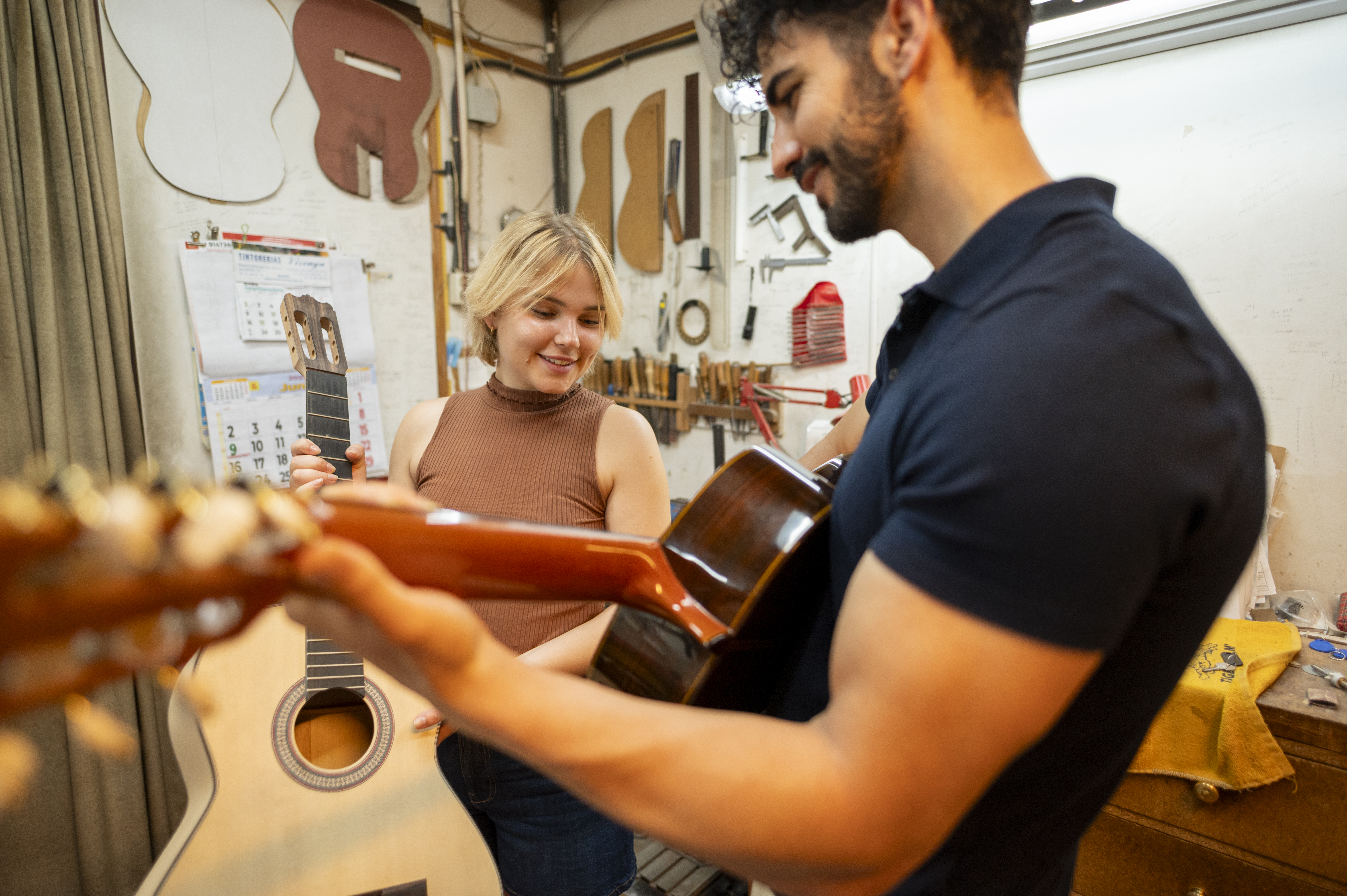 •Guitar Workshop: unique handmade guitars, with passion inherited for generations. Works of art in high quality wood, chosen by masters such as Eric Clapton and Paco de Lucía.