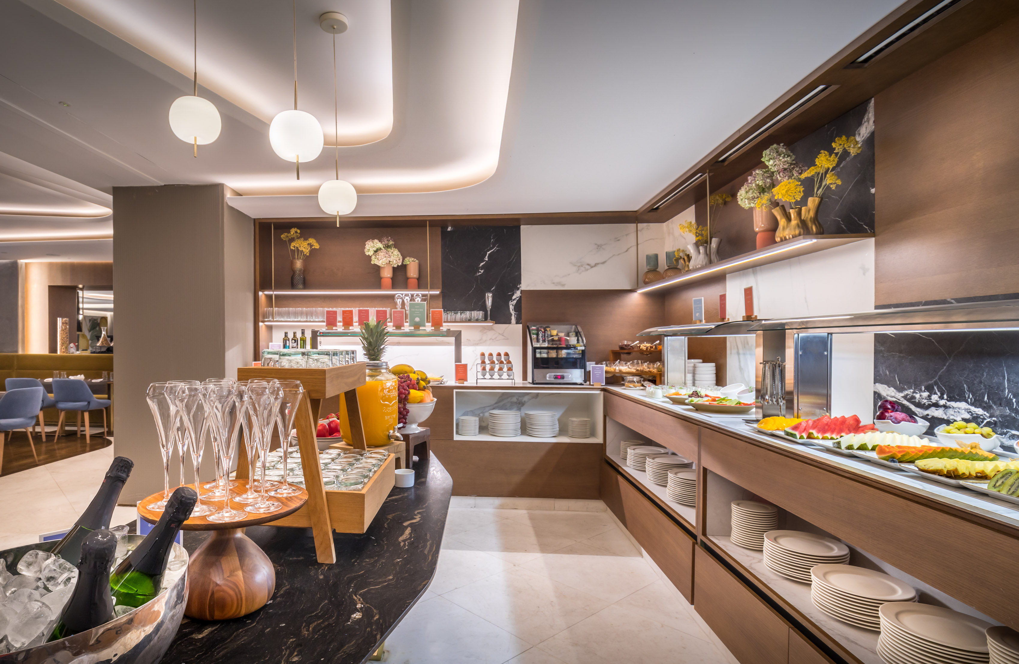 At Barceló Emperatriz, we invite you to enjoy a unique gastronomic experience at the Mutis Restaurant, where you can indulge in a complete breakfast to kickstart your day with energy. The restaurant, with its elegant and modern decor, offers a warm and welcoming atmosphere, perfect for enjoying a relaxed and nourishing meal.