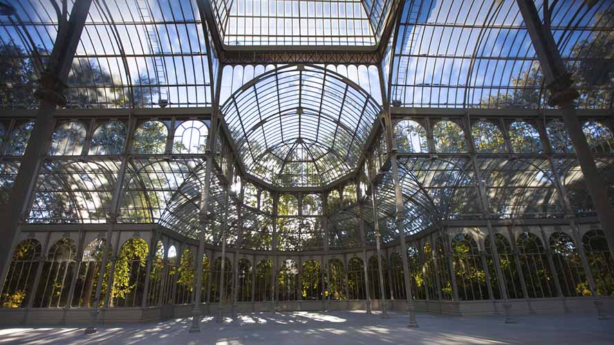 Visitors can also enjoy the Senda botánica del Retiro [Retiro Botanical Trail], an eight-kilometre tour of over eighty species of trees. Alternatively, visitors can stop off at the Biblioteca Pública Municipal Eugenio Trías [Municipal Public Library]—which occupies a former cage in the Casa de las Fieras—or the previously mentioned Palacio de Cristal, an architectural jewel in its own right, now used as an exhibition centre by the Museo Reina Sofía.