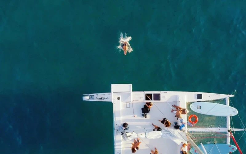The catamaran is reserved exclusively for your group, with a maximum of 12 people on board, ensuring a more relaxed and personalised experience away from crowded areas.