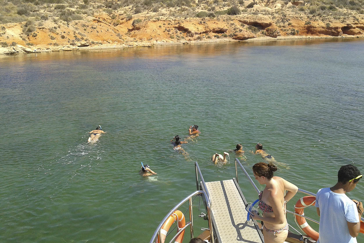 Have a great time on this exclusive excursion, designed to enjoy a privileged 1-hour swim in the Mar Menor, anchored in front of one of its islands. The route is accompanied by chill-out music and drinks included during the trip.