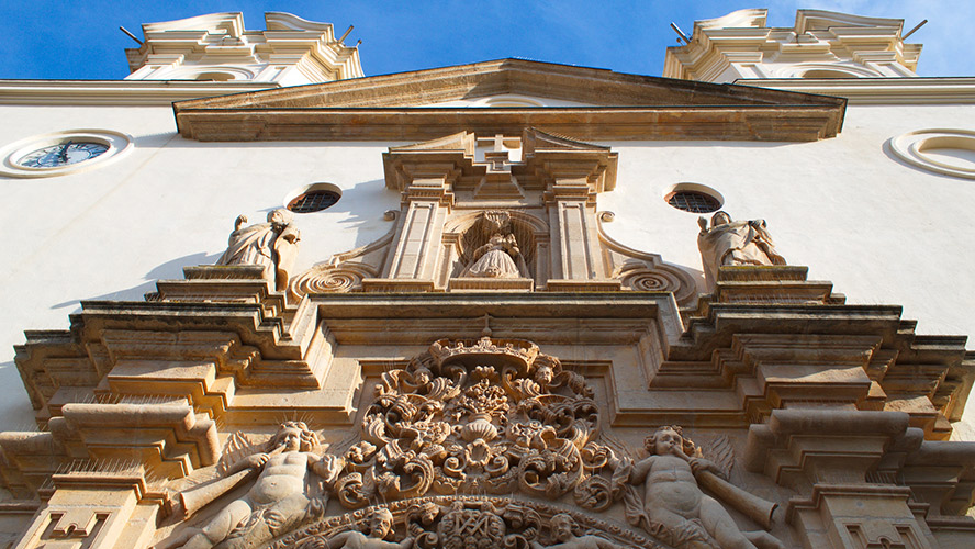 Declared an Asset of Cultural Interest in the Monument category, the Sanctuary of La Fuensanta is an example of the best Baroque architecture in Murcia. Its impressive façade, the work of Toribio Martínez de la Vega (1705), is flanked by two towers and crowned by a pair of angels with trumpets holding the coat of arms of the cathedral chapter. Further up, a central carving of the Virgin of La Fuensanta herself is accompanied by Saint Patrick and Saint Fulgentius. Behind the façade, the three naves, the chapels, and the large dome over the transept create a harmonious and well-proportioned space.