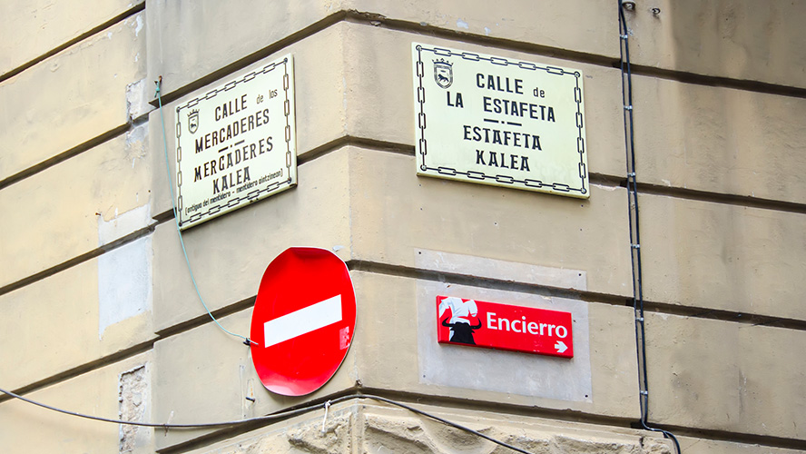 The running of the bulls at Calle Estafeta starts in the form of a bend, with a 90-degree turn to the right, at the intersection with Calle Mercaderes, and this is one of the most dangerous stretches of the whole route. There, the bulls often slip and collide with the wooden fences where the fans crowd together. They then follow this narrow road until it ends at the bullring, in the section known as Telefónica.