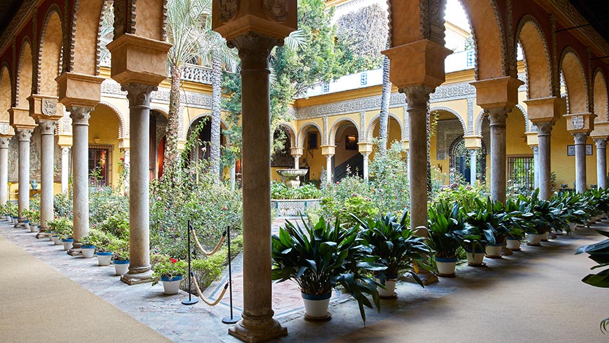 Visitors to Seville have had the opportunity to go and see the Palacio de las Dueñas (a historic residence of the House of Alba) since 2016—the year the palace first opened its doors to the public. For most of her life (and until her death on 20 November 2014), this was the home of the Duchess Cayetana de Alba, the heiress to an aristocratic heritage that pervades every corner of the building. Built between the fifteenth and sixteenth centuries, the Palacio de las Dueñas takes its name from the long vanished monastery of Santa María de las Dueñas, which once occupied the adjoining land. It originally belonged to the Pineda family, the Lords of Casabermeja, who were forced to sell the mansion in order to pay the ransom for Juan de Pineda, who had been captured by the Arabs in the War of Granada. Since 1612, when the sixth Duke of Alba married a daughter of the Ribera family, owners of the estate at that time, the palace has belonged to the House of Alba. Las Dueñas, a combination of Gothic-Mudéjar and Renaissance styles, is of interest not only thanks to its architecture and its splendid patios and gardens, but also because of its art collection—it houses over 1,400 pieces—and for the many historical anecdotes associated with it. The most intriguing of these is the birth of the poet Antonio Machado in 1875.