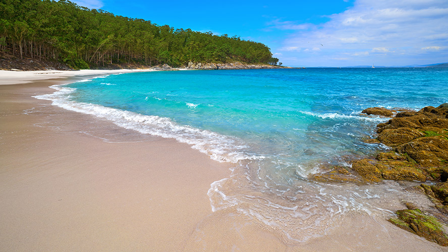 - Praia de Rodas.- In 2007, the British newspaper The Guardian called this long stretch of sand just over one kilometre in length and 60 metres in width the most beautiful beach in the world. And they were not wrong, as Rodas beach is a true wonder of fine white sand and crystalline water. What’s more, the beach also connects Monteagudo and Faro Islands, making it even more special.