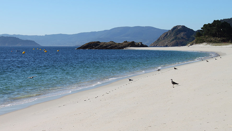 Most of the coastline of the islands is characterised by rocky cliffs that endure, with great stoicism, the constant battering of the waters of the Atlantic. Nevertheless, although they are few and far between, the fine white sandy beaches of the Cíes Islands offer incredible beauty.