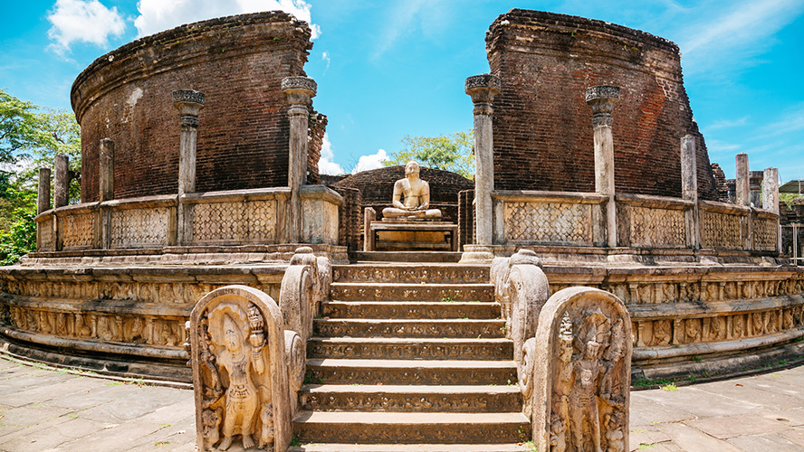 With a surface area spanning 122 hectares (running five kilometres from north-to-south), Polonnaruwa is located in the central-northern part of Sri Lanka next to the immense Pakrama Samudra reservoir. It is a 55-kilometre drive from Sigiriya. If you’re looking to travel to Polonnaruwa from Colombo, which is Sri Lanka’s commercial capital and the location of its busiest international airport, you can get there via a seven-hour train journey.