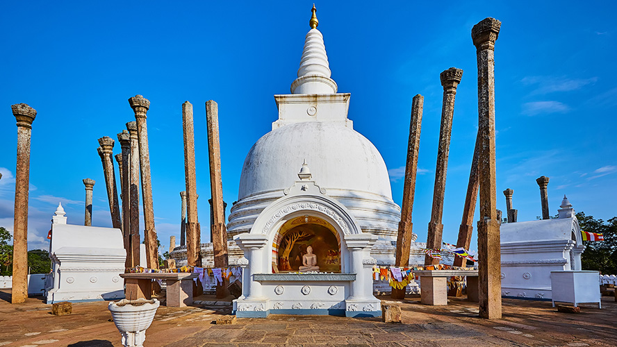 The ancient city of Anuradhapura, considered sacred in the Buddhist faith, spans 40 square kilometres and is home to various palaces, monuments, monasteries and dagobas (known locally as ‘stupas’). One of these, the Thuparamaya Dagoba, dates back to the 3rd century BC. It is considered to be one of the world’s largest archaeological sites.