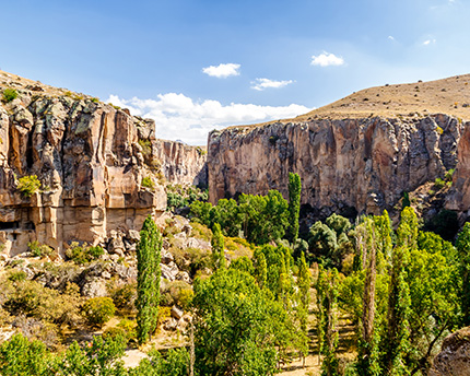 The Ihlara Valley is a 14-km canyon with 60 rock-hewn Byzantine temples that are decorated with pre-Iconoclasm frescoes.